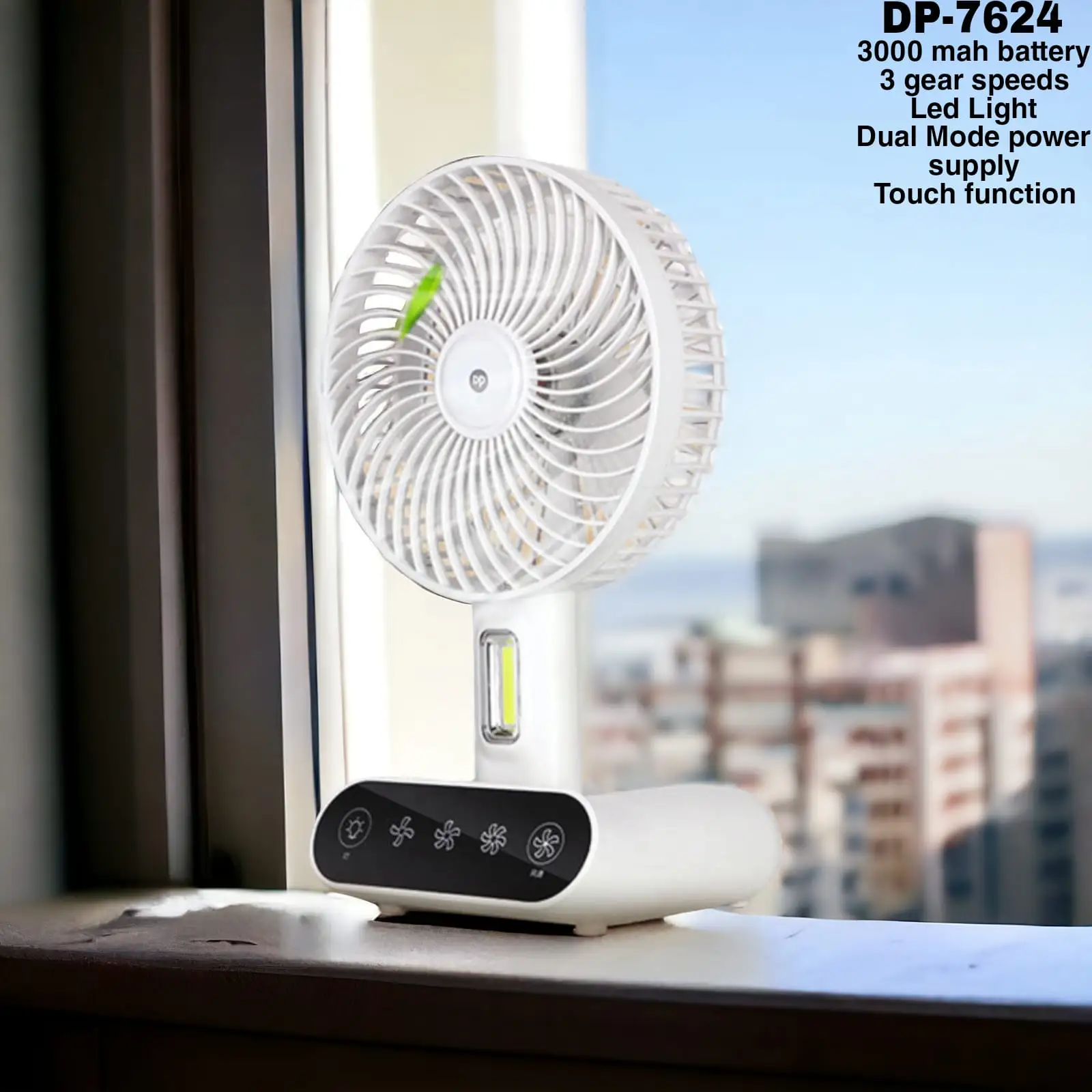 Rechargeable TableTouch Fan With Lamp USB Charging Portable Handheld 3 Gear Speed Desktop Mini Fan (DP 7624 )
